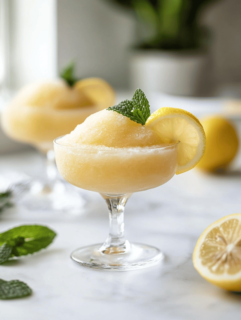 - Pour the slushie into chilled glasses, letting the icy, granular mixture mound slightly over the rims.